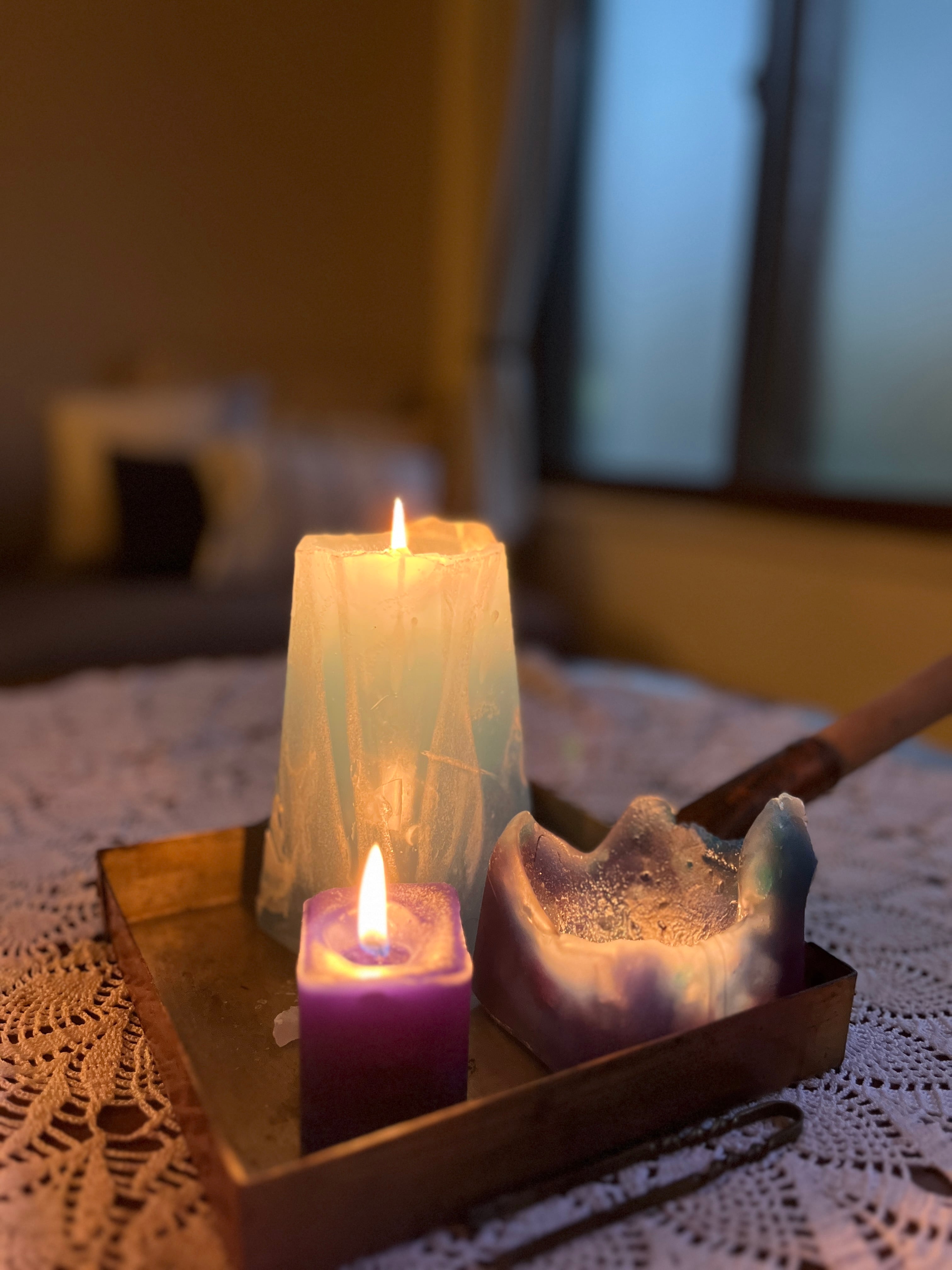 燃焼効率も良く、たっぷり灯していただけるサイズです。半分くらいから内側にランタンのように掘り進みながら灯ります。
